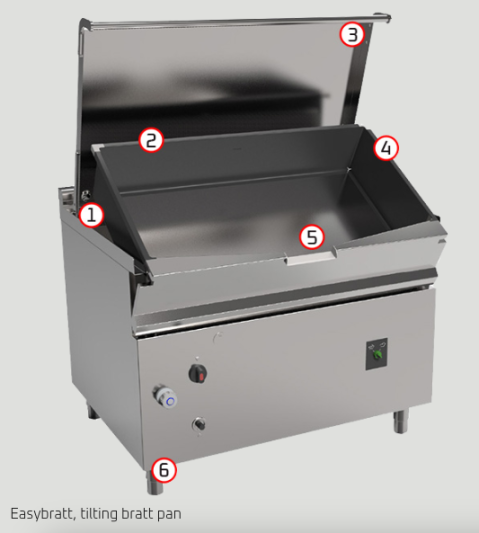 Introducción de agua en la cuba mediante grifo y caño de suministro fijado sobre el equipo, Vuelco Manual, AISI 304, Control de temperatura de 45°C a 295°C garantizado por termostato, Versión eléctrica y a gas disponible